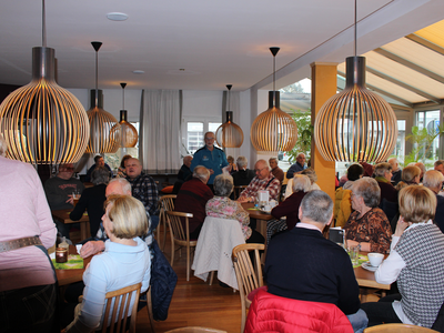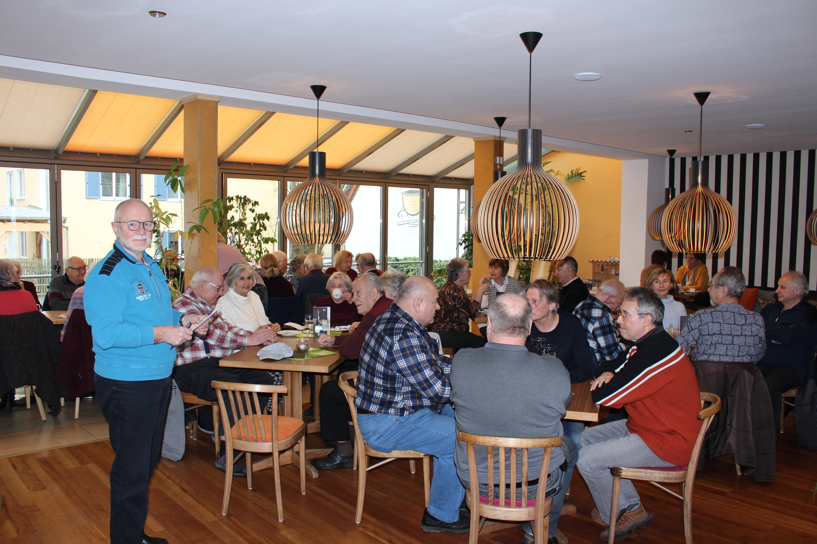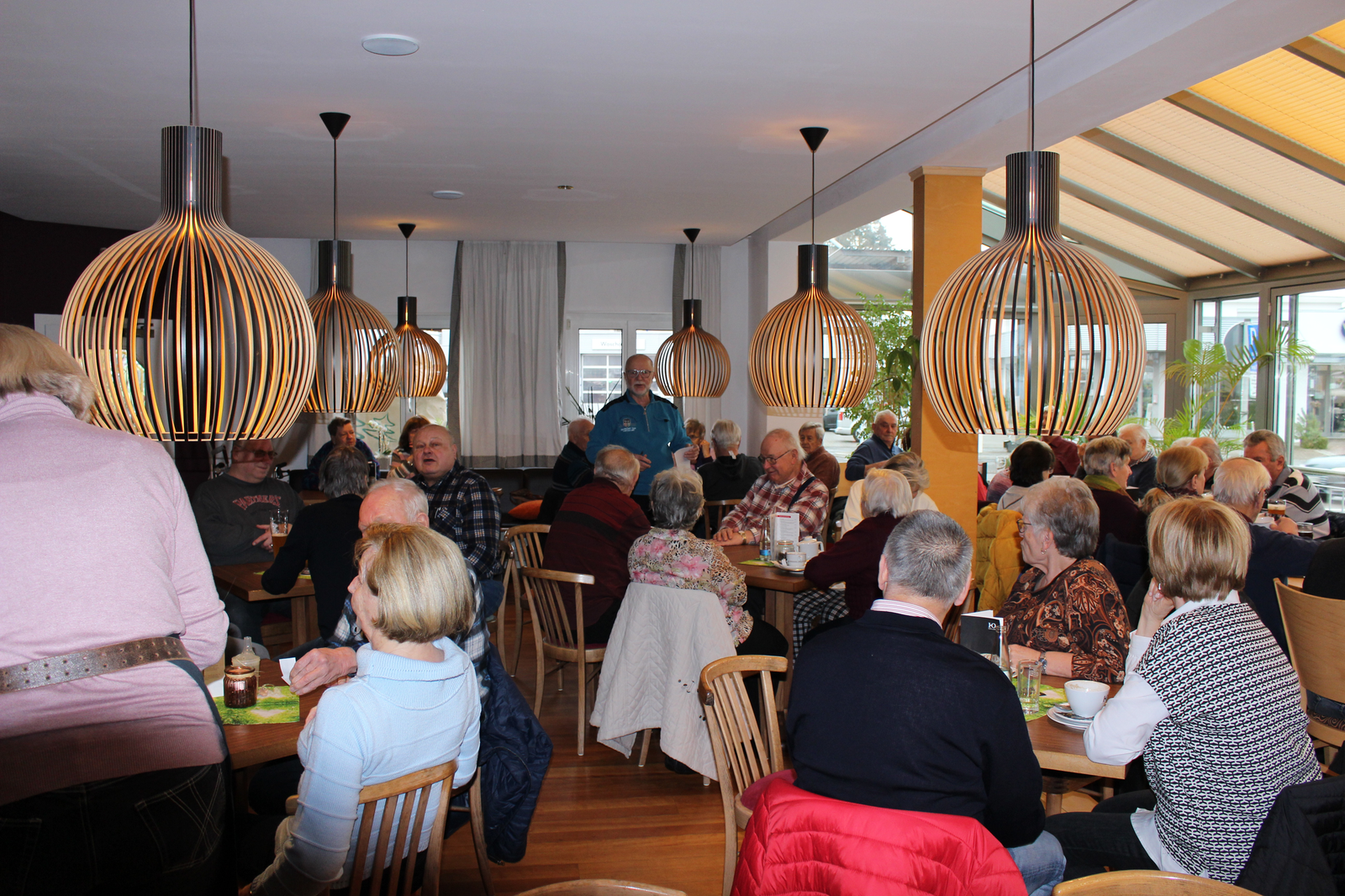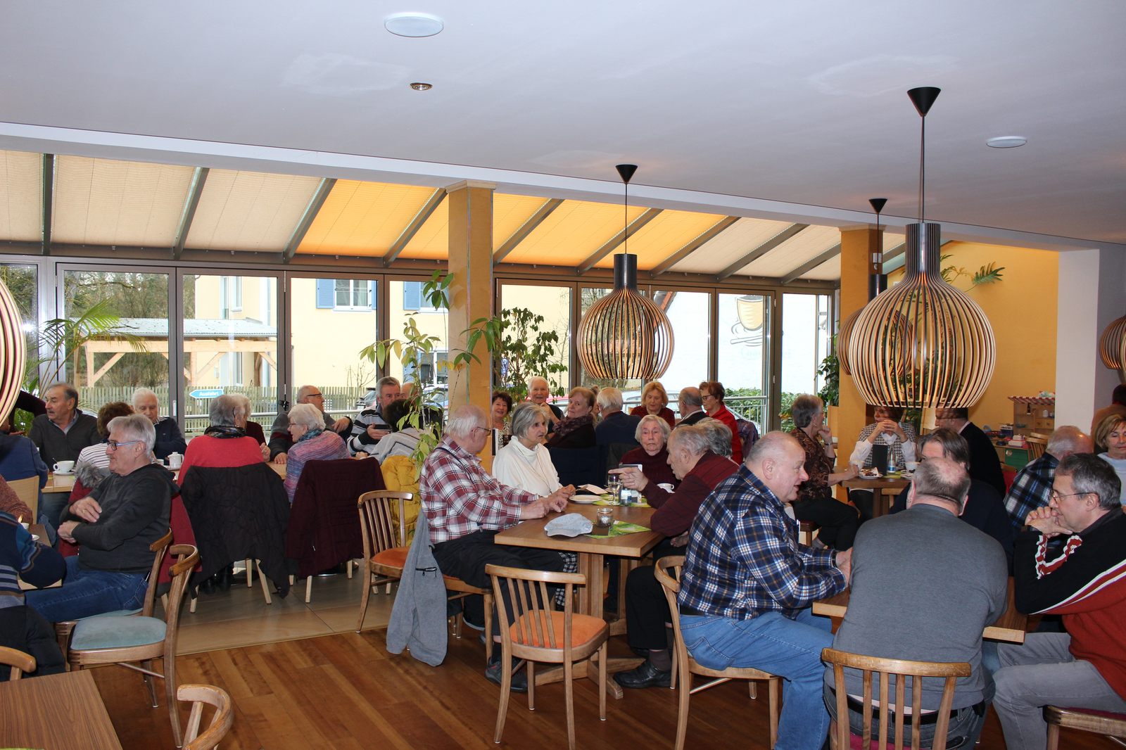 Im Foto oben Kurt Weingartner (links im Bild) im nahezu vollbesetzten Café Jana. In der Galerie weitere Bilder.