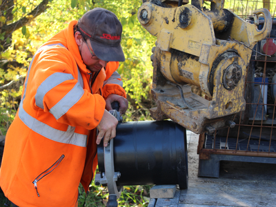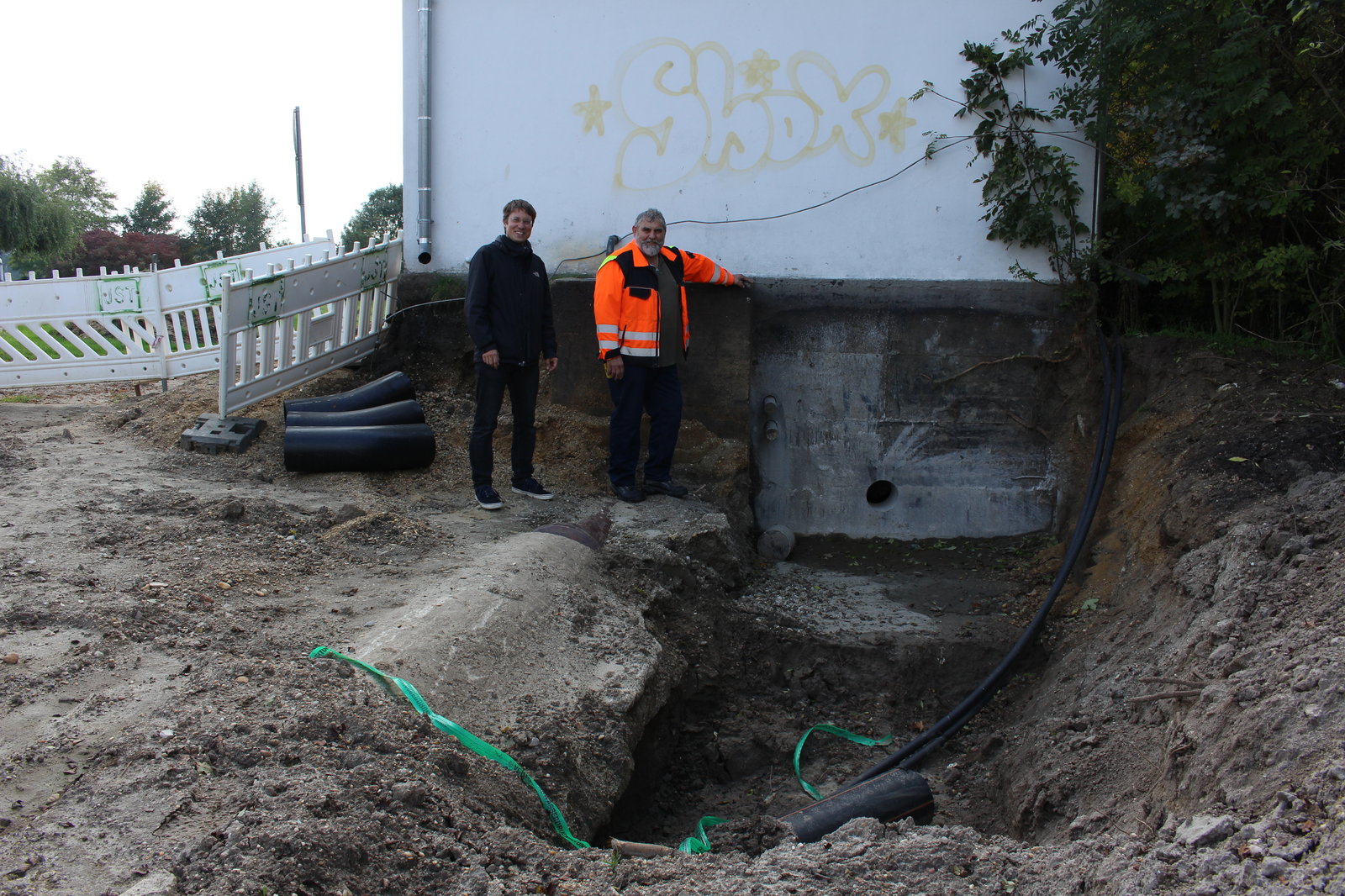 Im Foto oben Kläranlagenleiter Konrad Ettengruber und Stadtwerkeleiter Dr. Rainer Reschmeier an der Aunkofener Straße, wo eine Druckleitung vom Pumpwerk Aunkofen in die Kläranlage verlegt worden ist. Im ersten Bild der Galerie: Feinarbeiten an der Druckleitung. Im zweiten Bild Dr. Reschmeier (li.) und Ettengruber am frei gelegten Pumpwerk Aunkofen - das in Bild 4 wieder aufgeschüttet ist. Bild 5: Untersuchungen des Kanalsystems an der Abensstraße, Nähe Maderturm. Die weiteren Bilder zeigen die Arbeiten am Stadtplatz im Schlauchlining-Verfahren.