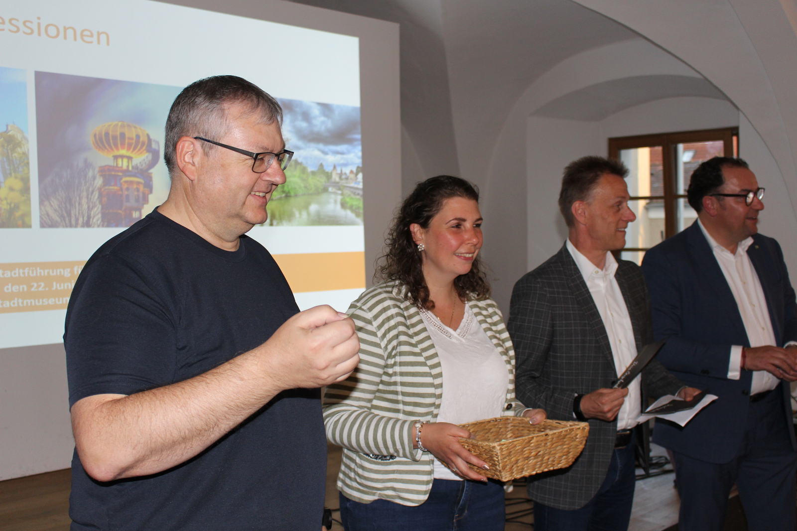 Stadtarchivar Ludwig Stockert stellte das Stadtmuseum Abensberg, die Ausstellungen und die Angebote drumherum vor – inklusive Museumspädagogik und Stadtarchiv, das den Bürgerinnen und Bürgern bei Anfragen offen steht. Er vertrat Museumsleiterin Dr. Beatrice Wichmann. Die Leiterin der Abensberger Volkshochschule, Katrin Koller-Ferch, präsentierte das umfangreiche Angebot an Kursen und Veranstaltungen, das mittlerweile in Kooperation mit der vhs Neustadt/Donau erstellt und durchgeführt wird. Auch der „Treffpunkt“, der ehemalige Bahnhofskiosk, wird vom vhs-Team organisiert. Frau Koller-Ferch lud alle Anwesenden ein, sich im Kursangebot der vhs umzusehen. Und wer etwas kann, könne dieses Wissen gerne bei der vhs unterbringen: „Wir suchen immer Referenten.“ Auch den Arbeitsbereich von Ines Geltl stellte sie vor – das Ferienprogramm und das Jugendzentrum gehören dazu. Die Ehrenamtskampagne hat Frau Geltl mit Sportreferent und Stadtrat Sebastian Kneitinger, der die Aktion initiierte, umgesetzt und betreut die Kampagne bis heute. Vhs-Mitarbeiterin Melanie Schlauderer kümmert sich u.a. um die Veranstaltungsreihen der Stadt.