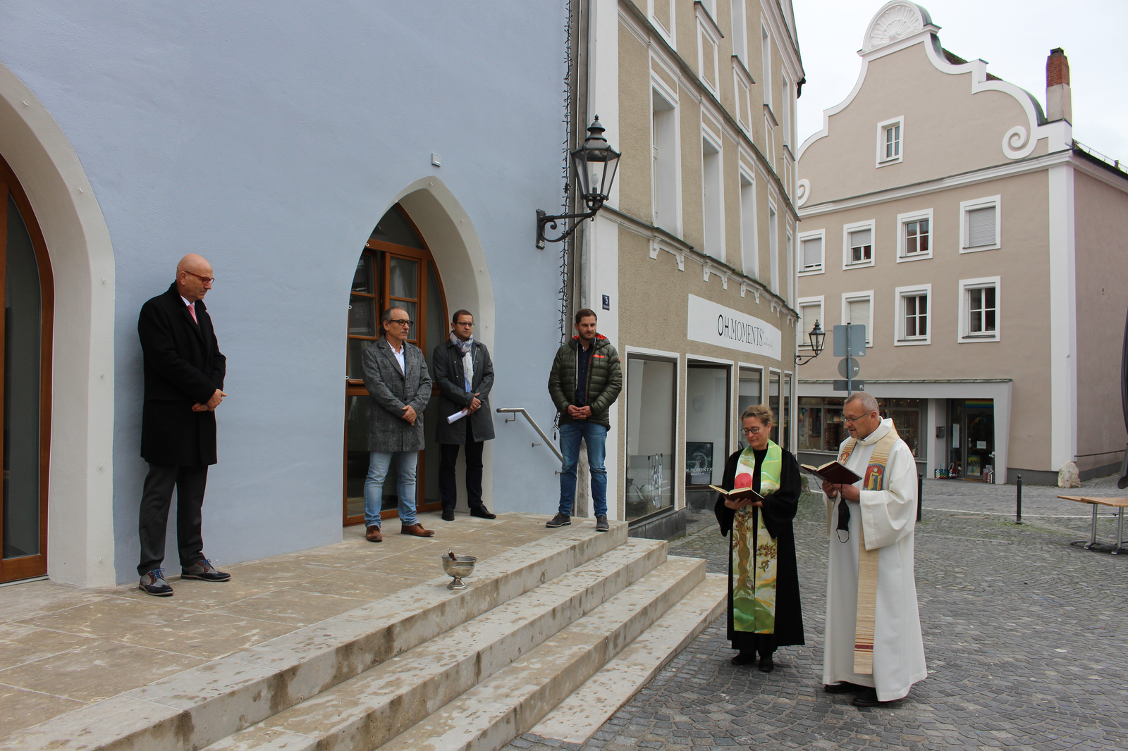 Die Stadtverwaltung Abensberg dankt Pfarrerin Barbara Dietrich und Pfarrer Georg Birner für die gemeinsame Besinnung und die Segnung des Gebäudes. (Aufgrund der geltenden Gesundheitsempfehlungen wurde auf eine Feier verzichtet.)
