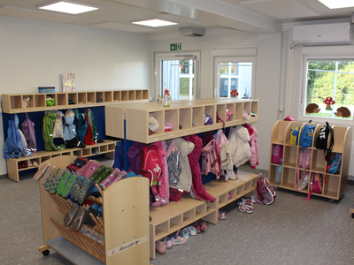 Die neue Gruppen und die dafür nötigen Räumlichkeiten wurden in Modulbauweise ermöglicht – sieben Module sind für diese beiden Gruppen nötig. Drei für den Gruppenraum, einer für einen Nebenraum, damit Platz für Extraprojekte geboten ist, einer für sanitäre Anlagen und zwei, die als Garderoben genutzt werden. Cathleen Winkler, Leiterin des Kindergartens, verwies auf den hochwertigen Wärmeschutz, der gemütliches Beisammensein ermöglicht, und die Klimaanlage für wärmere Tage. Auch Schallschutz wurde von Anfang an berücksichtigt.