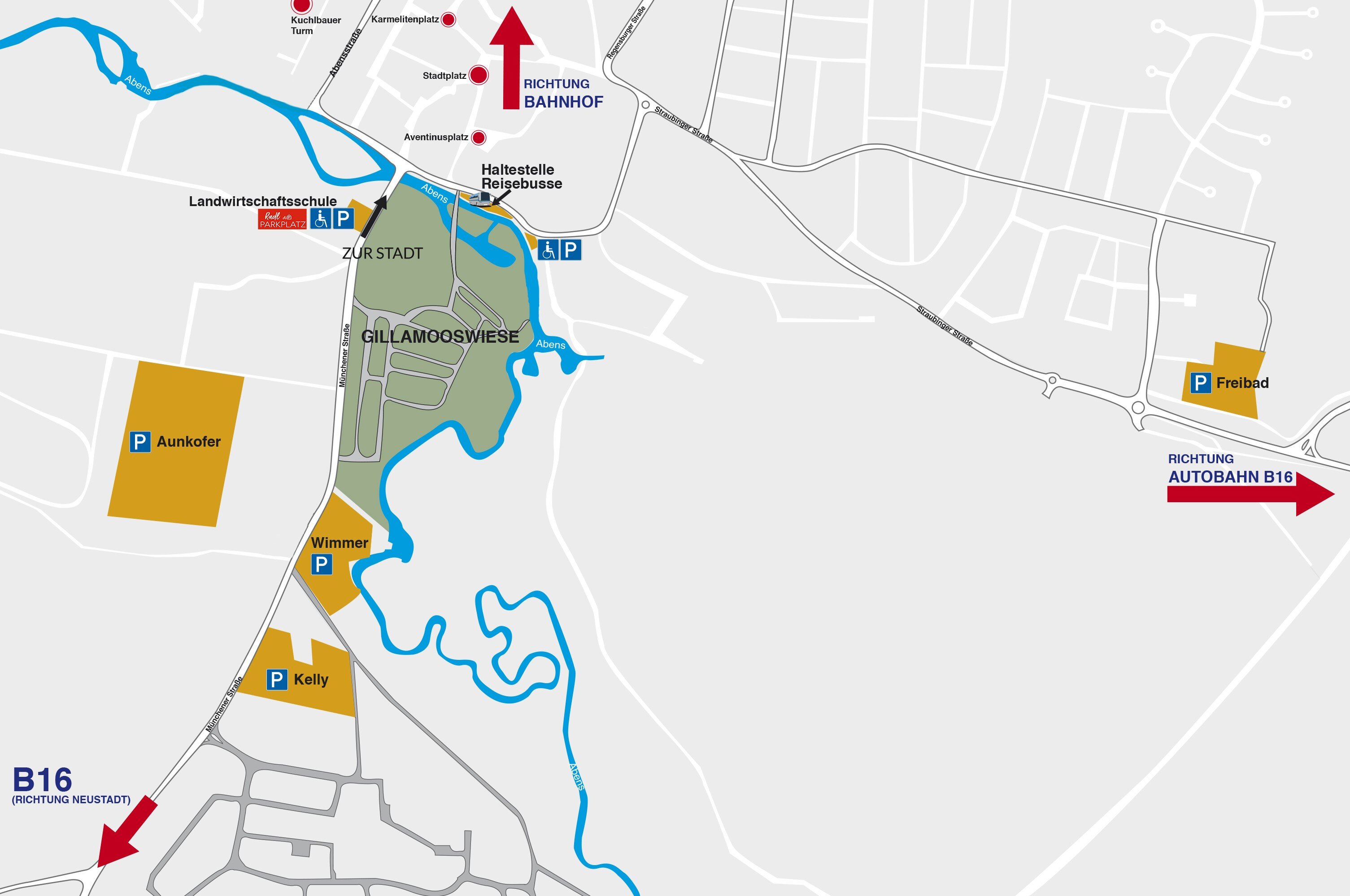 Folgt in Abensberg bitte der Beschilderung Richtung Gillamooswiese und beachtet die Parkhinweise vor Ort.
