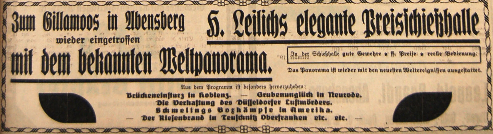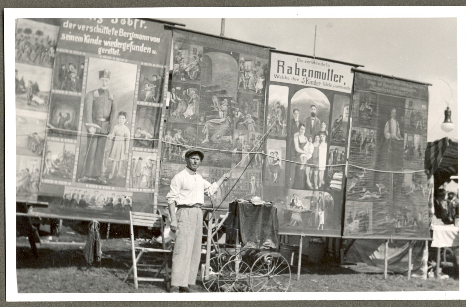 Gegen Ende des 19. Jahrhundert treten vermehrt sensationelle oder gruselige Darbietungen auf. Franz Xaver Osterrieder etwa hielt fest: „Ab 1885 mehrten sich die Wachsfigurenkabinette. Alle Folterwerkzeuge des Mittelalters in ihrer Anwendung waren zu sehen, selbst die „Eiserne Jungfrau“ in Nürnberg. Jeder bedeutende Raub- oder Lustmörder war naturgetreu in Wachs nachgebildet, zum mindesten der Kopf des Enthaupteten oder Gehängten.“
