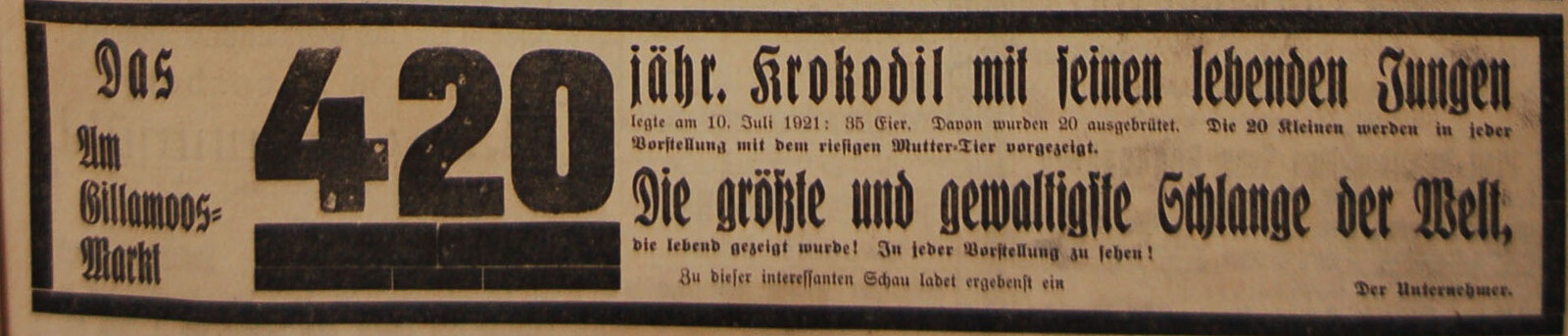 Um 1900 erscheint der Kinematograph als der letzte Schrei, in den 20er Jahren lösten ihn dann Kino-Theater Vorführungen ab. Klassische Schaustellungen sind heute teilweise aus der Mode gekommen. Weder bringt der „Elektro John“ Glühbirnen mit dem Mund zum Leuchten, noch zeigen Cinematographen „Maria Stuart“. Das Kasperltheater der Familie Richter allerdings, das ist heute genauso beliebt auf dem Gillamoos wie Ende des 19. Jahrhunderts.