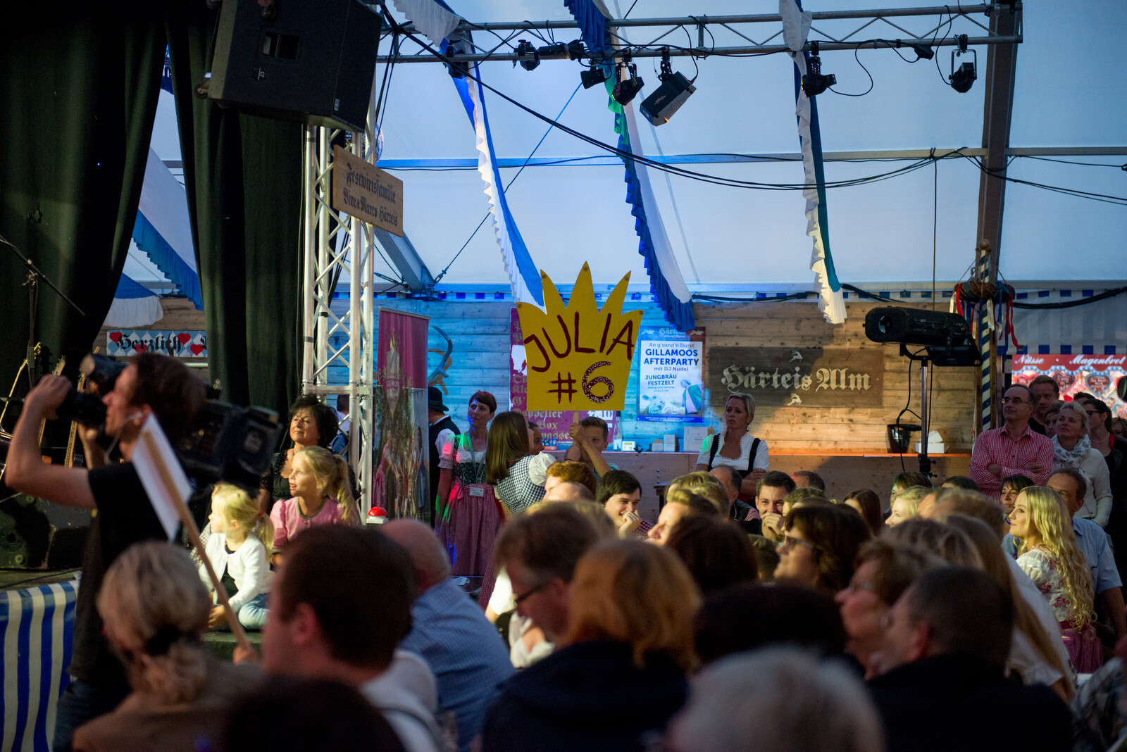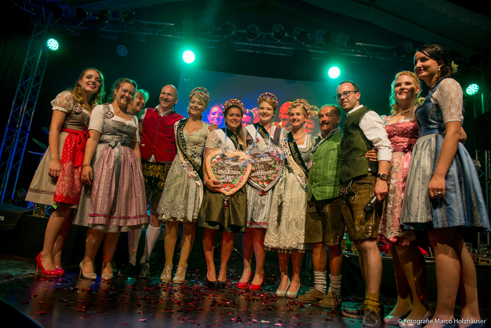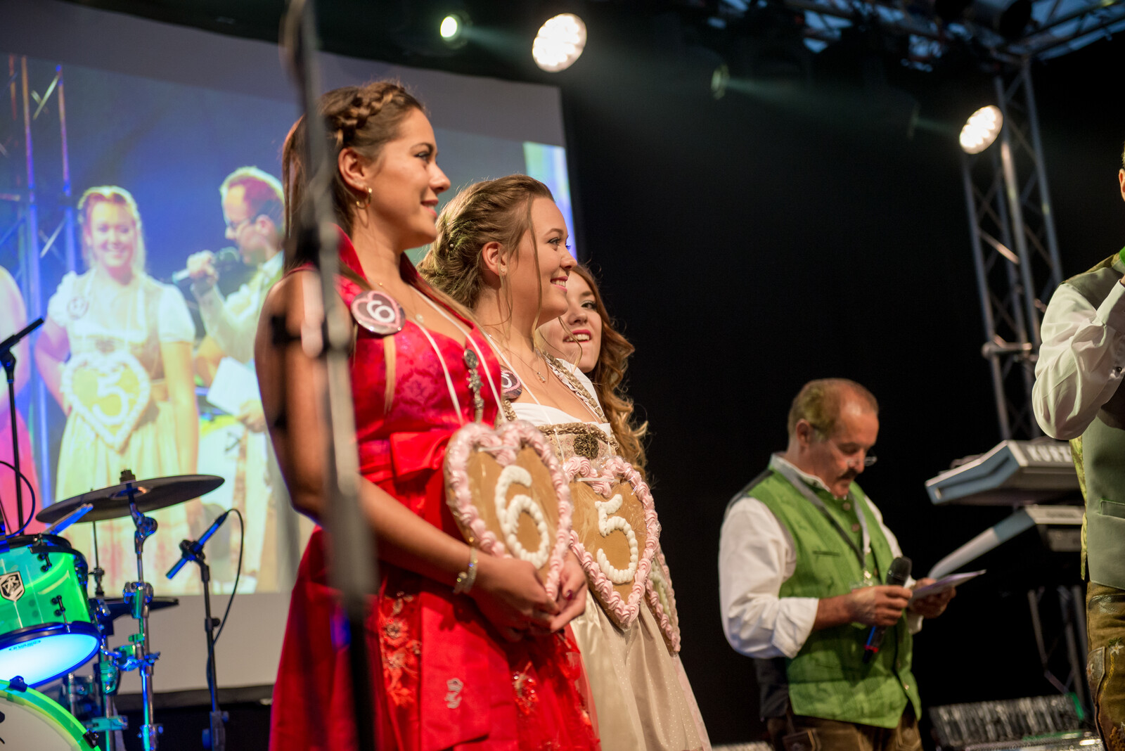 Julia und Dani holten sich am Montag im vollen Jungbräuzelt die Kronen der Gillamoos Dirndlkönigin und ihrer Vize.
