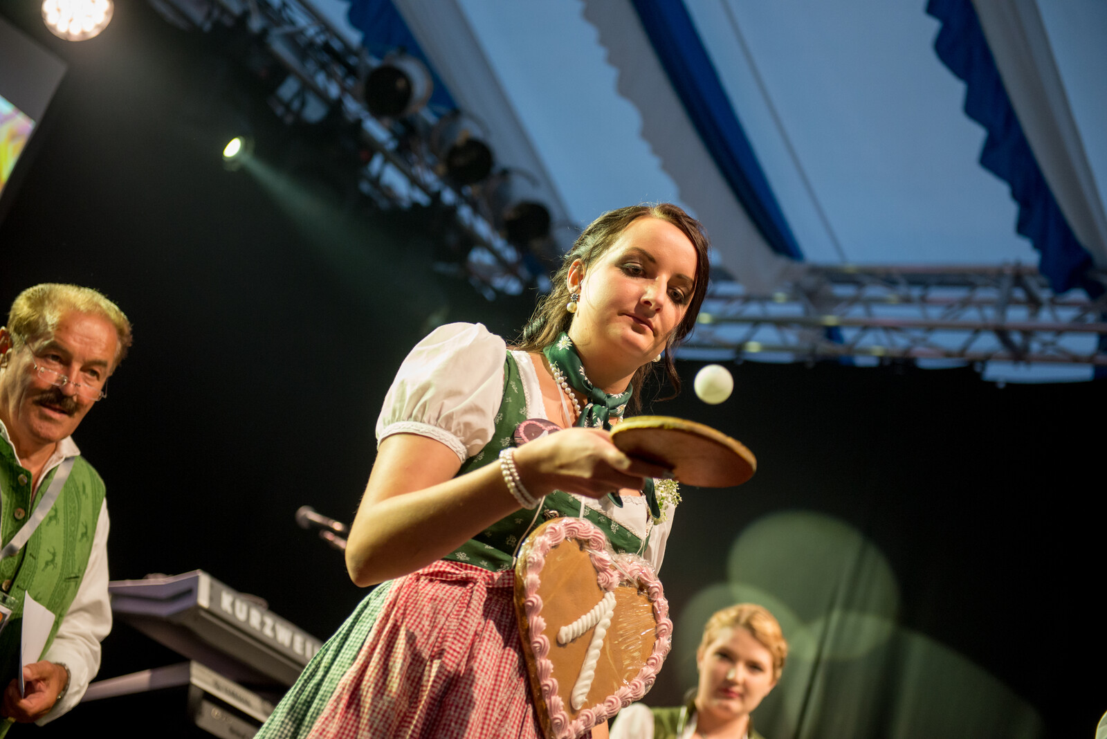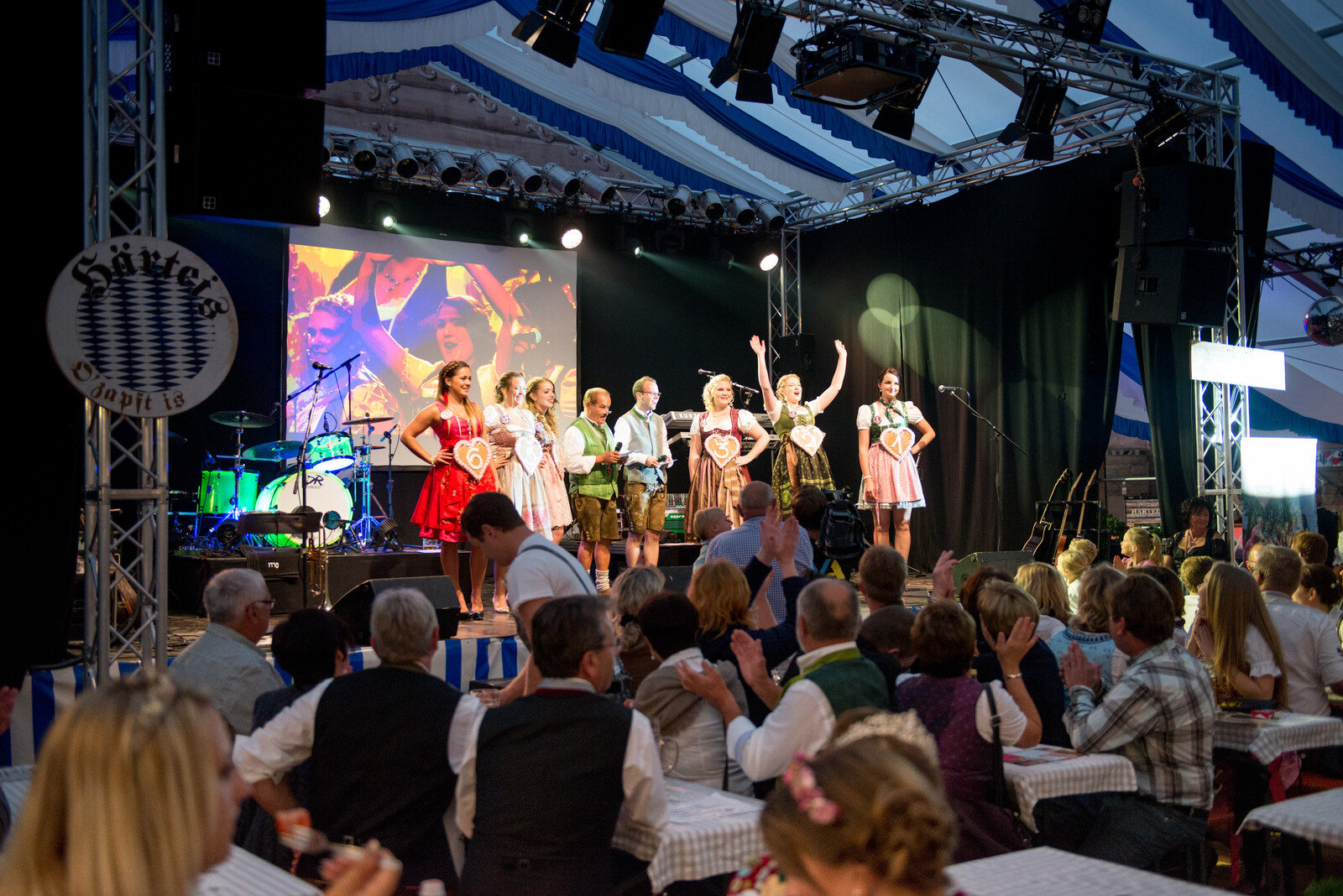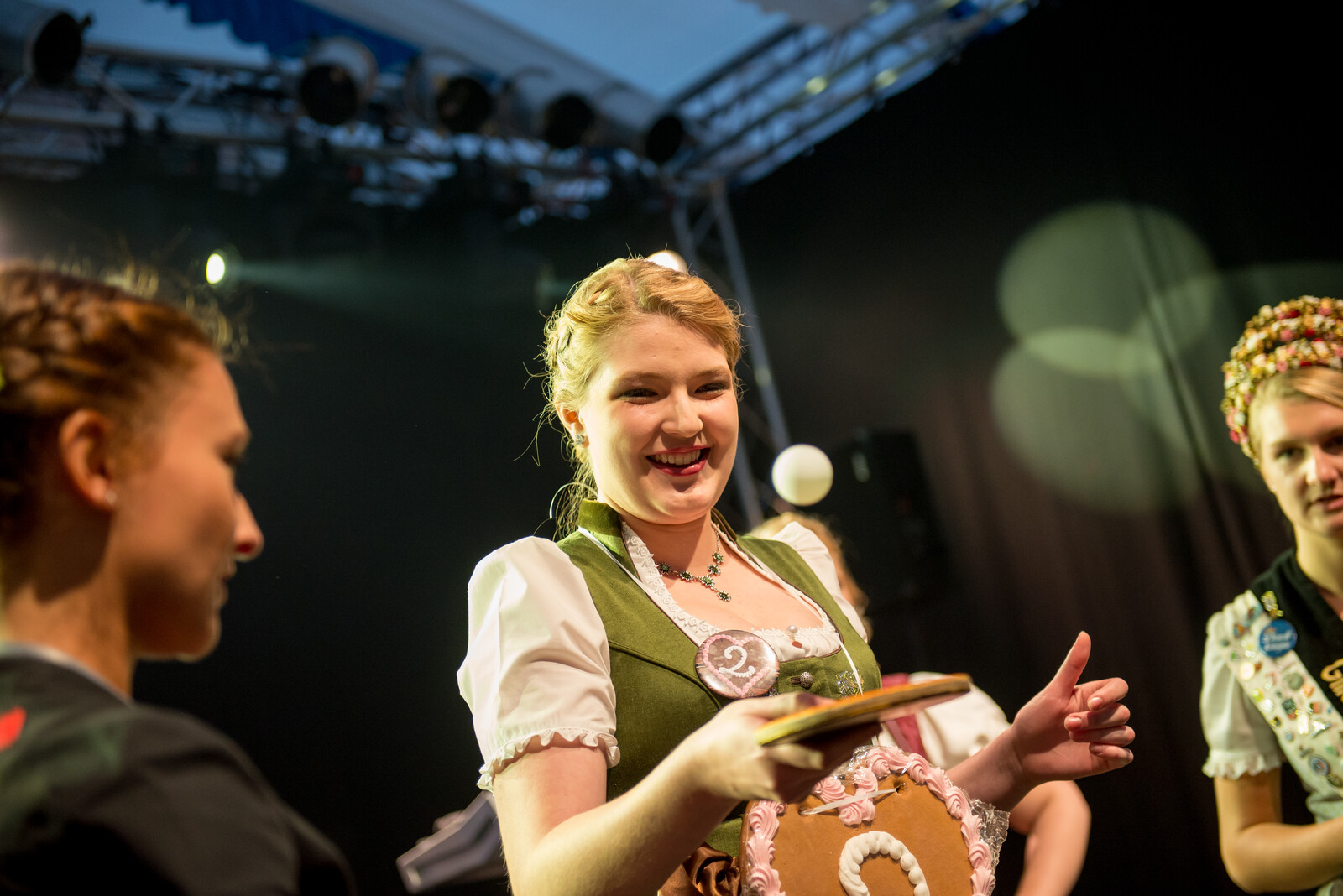 Julia und Dani holten sich am Montag im vollen Jungbräuzelt die Kronen der Gillamoos Dirndlkönigin und ihrer Vize.