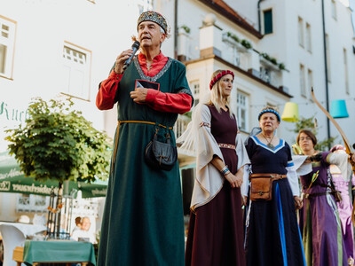 So fanden beispielsweise im Rahmen des Pfingstferienprogramms thematisch passende Angebote für Kinder statt. Die Sommerlaune am Stadtplatz bietete die ein oder andere musikalische Zeitreise, sowie offene Stadtführungen mit Ulrich III.
