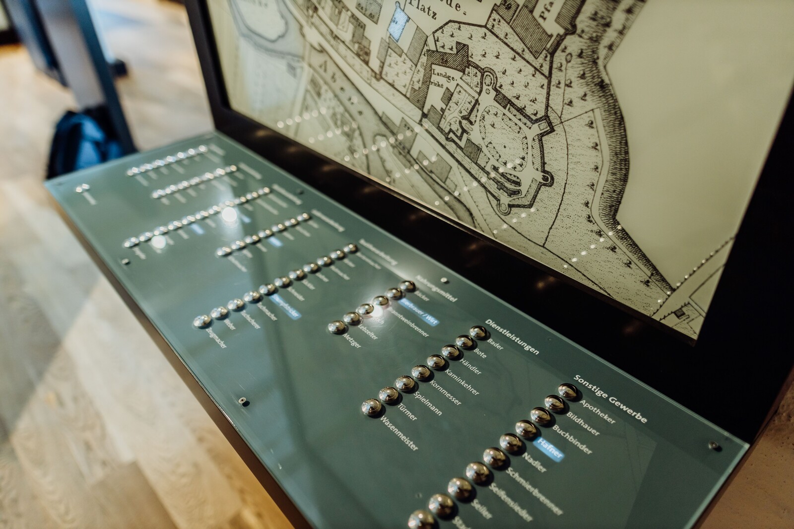 Unter dem Titel „Burg und Stadt“ lädt das zweite Obergeschoss zu einer Reise durch die Abensberger Stadtgeschichte von der ersten urkundlichen Erwähnung der Burg „castrum abensperch“ 1256 bis in das 20. Jahrhundert.