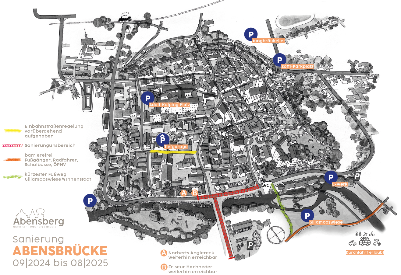 Ansonsten nutzen Sie bitte den Großparkplatz auf der Gillamooswiese. In nur 5 Minuten erreichen Sie von dort aus die historische Altstadt Abensbergs zu Fuß.